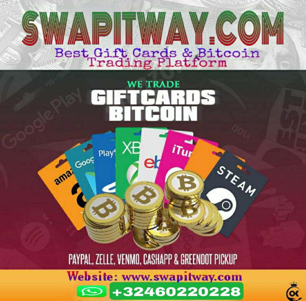 Swapitway.com is a platform that help you Swap your bitcoin and gift cards to cash. Want To Sell Bitcoin Online? Either you’re new or Professional to Bitcoin trading and you want to make sure you’re using a safe and secure platform that give the best rates in Bitcoin Trading Nationwide then You've to choose Swapitway as your no.1 best Bitcoin trading platform. Want to Sell Gift Cards Online? We provide you a safe way to swap your gift cards to cash with instantly payment and 99% best Rate Nationwide is assured. We're using customer-inclined conversion, we strive to provide the best gift card rates Nationwide. We accept iTunes, Amazon, Steam Wallet, Google Play, Apple Store, eBay, Walmart, Sephora, Nordstrom, Target, Nike, Macy's, Gamestop, Xbox, Vanilla, American Express (AMEX), OffGamers, Foot Locker, Visa, Play Station and others. Features - Swap Your Gift Cards to Cash Within 10Mins. - Sell Your Bitcoin And Get Cash within 5mins. - Get Instant SMS & Email Notifications On Transaction Updates - Access Your Trade History Without any Stress - 5Mins Payment. About Swapitway! Swapitway is a modern best gift card & Bitcoin exchange platform. Here, we're after our customers’ satisfaction. Using our best modern trading applications and website, you can sell or Swap your gift cards & Bitcoin within 5 minutes.